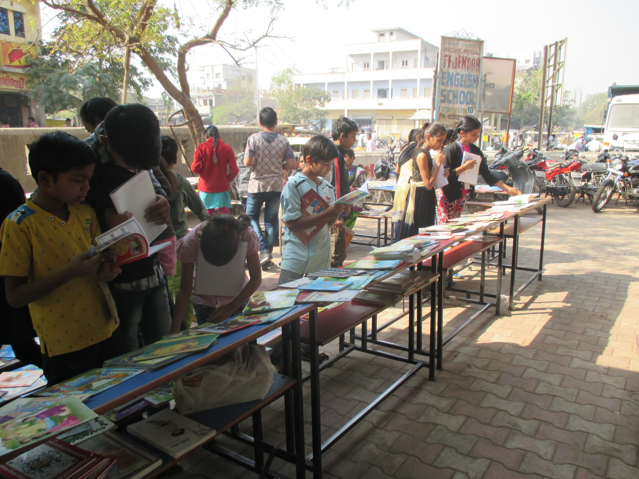 The most recent book fair ‘Pitara’ was held for 3 days on 5th, 6th and 7th January, 2017 in Tejendra School, Amraivadi. Like the earlier two book fairs, this too was held in a school where majority of students were slum dwellers. We had about 500 books, in Gujarati, Hindi and English from various local publishing houses like Tulika, Eklavya, Pratham, Jyotsana, etc. It is seen that children lose interest in books because the only books that they generally know of are academic books which have been forced upon them. Pitara included story books relevant to all age groups, from 1st to 12th grade children. Classic children’s literature like Panchatantra and Akbar-Birbal stories became their instant favorites; science books and activity books were also appreciated by the kids.